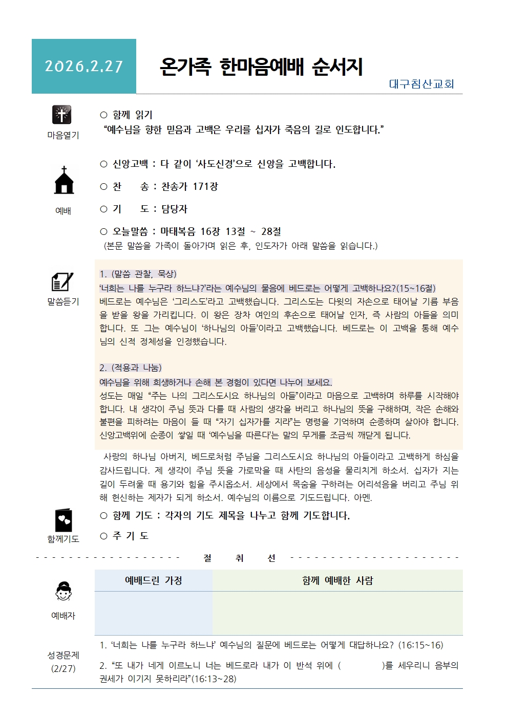 2026³â 2¿ù 27ÀÏ ¿Â°¡Á· ÇѸ¶À½ ¿¹¹è